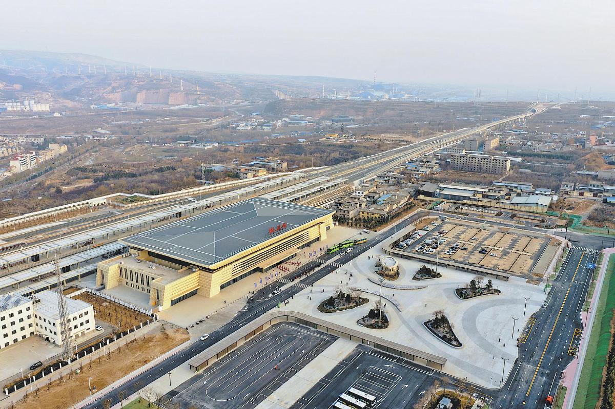12月24日拍摄的西延高铁铜川站(无人机照片)。