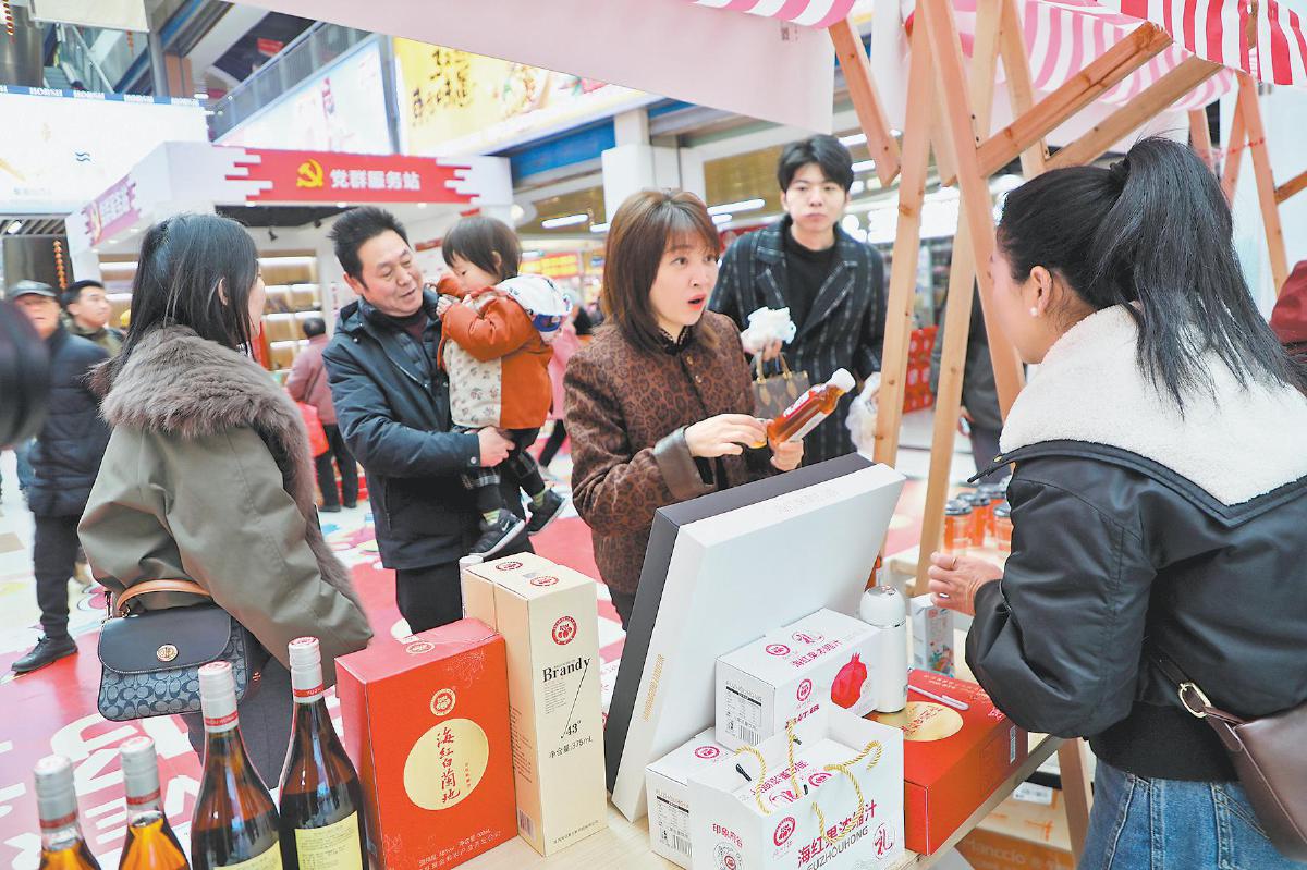 本报讯(记者 王疆瑜 李志东) 12月23日,由市林草局组织的榆林林产品展览展销活动走进浙江义乌副食品市场。在展会现场,13家企业带来的狗头枣、紫晶枣、山地苹果干、海红果酒等林产品,吸引当地采购商与市民驻足品尝、争相下单,充分彰显出榆林林产品强劲的市场吸引力。