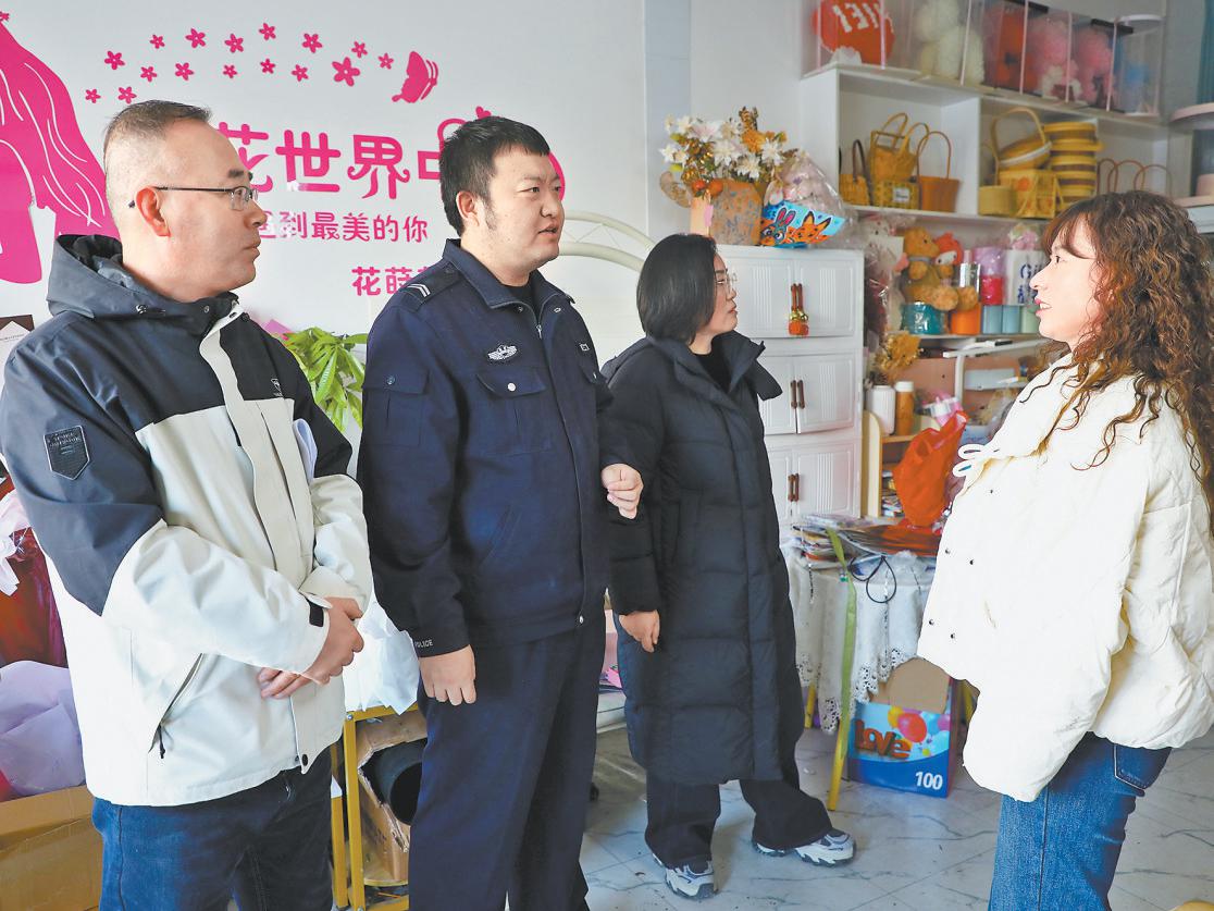 12月23日,榆阳区明珠路街道办事处联合高新区消防救援大队、沙河路派出所、明珠路派出所等部门,针对辖区商铺违规住人问题开展专题约谈暨警示教育活动。这是工作人员联合排查商铺违规住人情况。