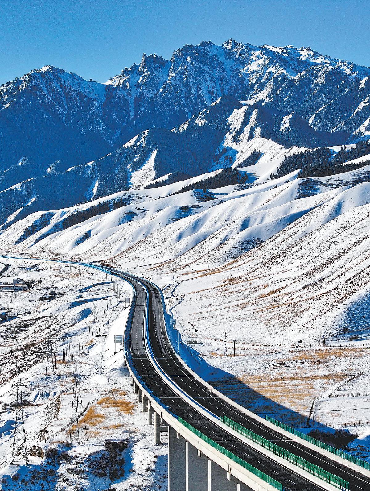 新疆乌尉高速公路蜿蜒在天山中(12月23日摄,无人机照片)。