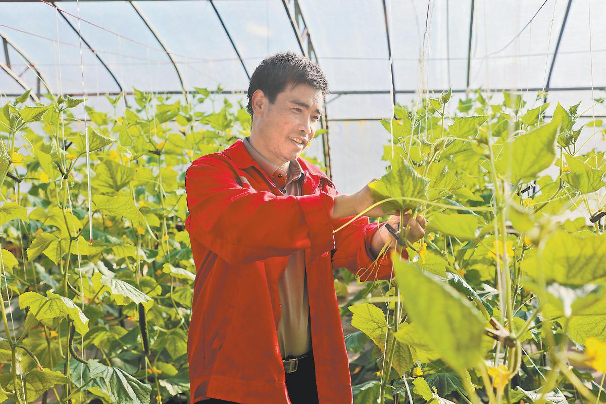 技术人员在白家硷镇查看无土栽培黄瓜长势。通讯员 刘涛 摄