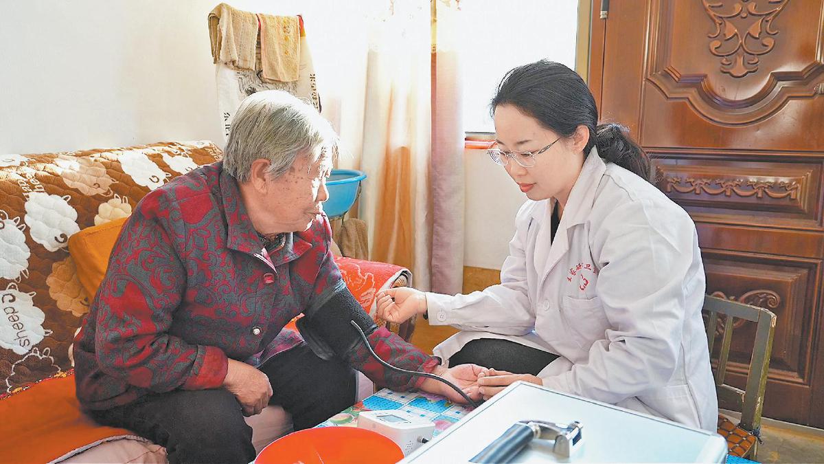 这份初心,化作了日复一日的奔波与坚守。多年来,李瑜梅的脚步遍布村子的每一个角落。她背着药箱走村串户,定期上门给老人们量血压、跟踪慢性病情况,把防病小知识讲给村民听。 82岁的村民徐怀福患有高血压多年,李瑜梅成了他家的“常客”。“瑜梅一个月总要往我家跑两三回,帮我量血压,还教授我适合老年人的锻炼方式。”徐怀福说。
