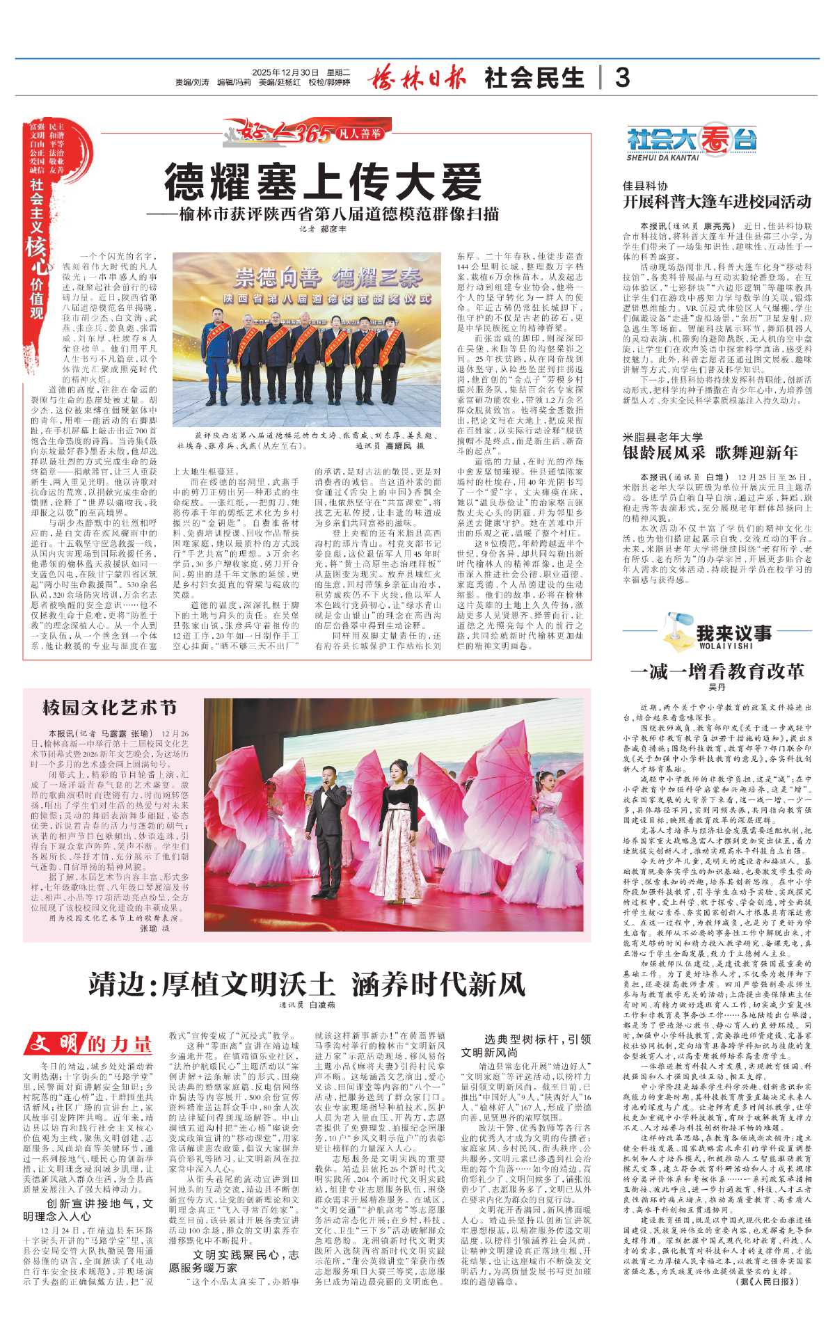 本报讯(通讯员 白堆) 12月25日至26日,米脂县老年大学以班级为单位开展庆元旦主题活动。各班学员自编自导自演,通过声乐、舞蹈、旗袍走秀等表演形式,充分展现老年群体昂扬向上的精神风貌。