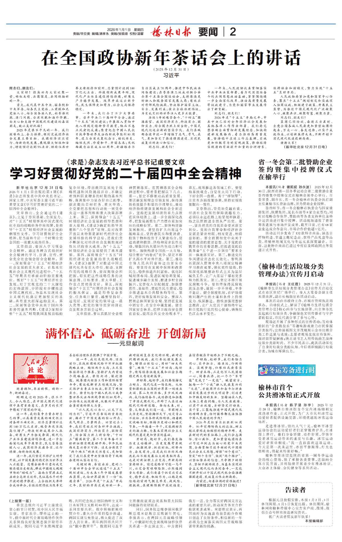 榆林日报 | 2026年01月01日