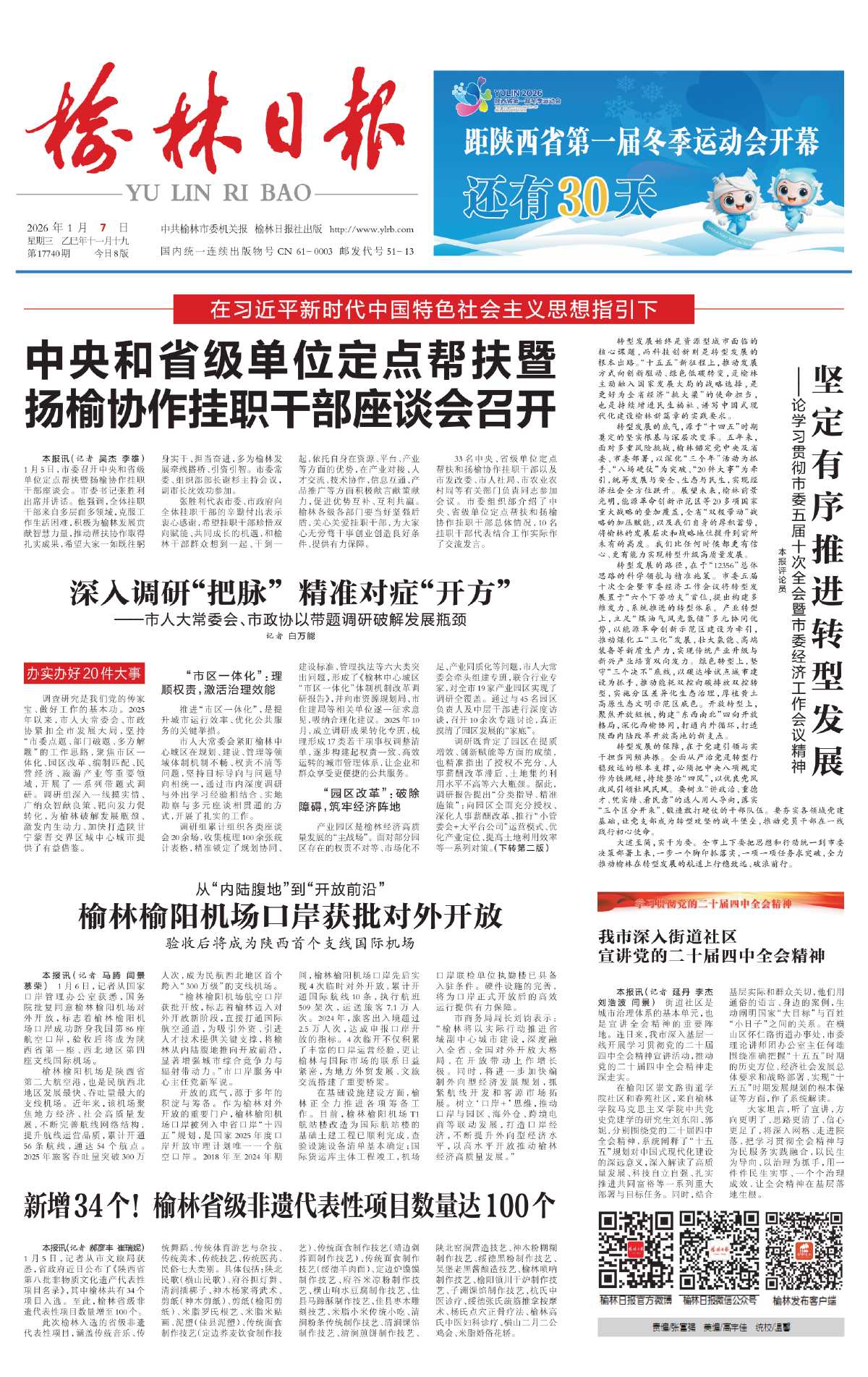 本报讯(记者 马腾 闫景 慕荣) 1月6日,记者从国家口岸管理办公室获悉,国务院批复同意榆林榆阳机场对外开放,标志着榆林榆阳机场口岸成功跻身我国第86座航空口岸,验收后将成为陕西省第一座、西北地区第四座支线国际机场。