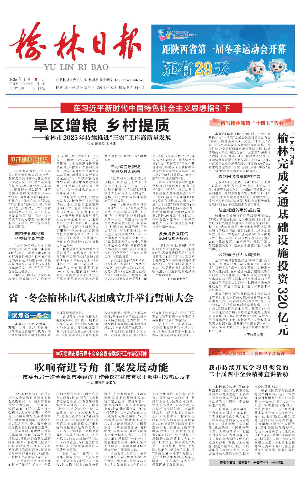 本报讯(记者 刘勃江 韩飞) 记者日前从榆林市“十四五”发展成就系列新闻发布会(基础设施建设专场)上获悉,“十四五”以来,全市交通运输系统紧紧围绕巩固提升全国性综合交通枢纽城市地位战略目标,以提质增效为重点,深入实施“十大工程”,统筹推进铁路、公路、民航、水路、邮政协调发展,交通运输事业取得了长足发展。“十四五”期间,全市累计完成交通基础设施投资约320亿元,基本构建起铁路、民航、公路、水路、邮政“五位一体”的综合立体交通运输体系。