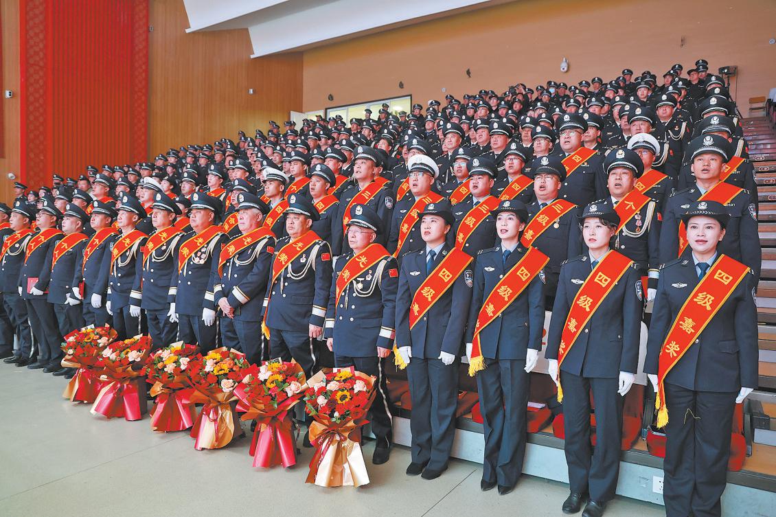 活动现场播放了“民警荣休”“岗位标兵”主题短片,深情回顾了荣休民警数十年从警路的奉献点滴,也生动展现了岗位标兵严格执法办案、坚守一线的奋斗足迹,勾勒出两代民警不忘初心、牢记使命、履职尽责的赤诚与担当。随后,还表彰奖励了10名“岗位标兵”,以及40余名荣立个人三等功和个人嘉奖的民警。