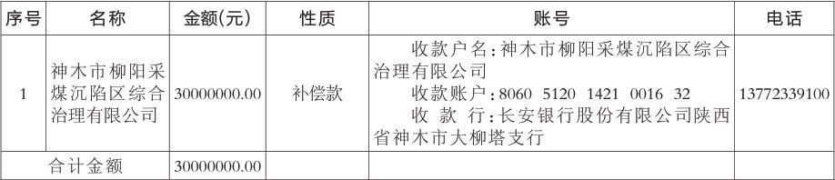 我公司为大柳塔镇柳阳煤矿采空区治理项目应急排险治理及回填复垦生态修复工程的原治理主体,已于2023年与神木能源集团签署了《主体剥离退出协议》,现申请拨付第五批补偿款,共计30000000元(大写金额:叁仟万元整),我公司本着优先支付拖欠的工程款、借款、材料款、工资、税款等各类欠款分配原则,现拟定具体分配方案如下: