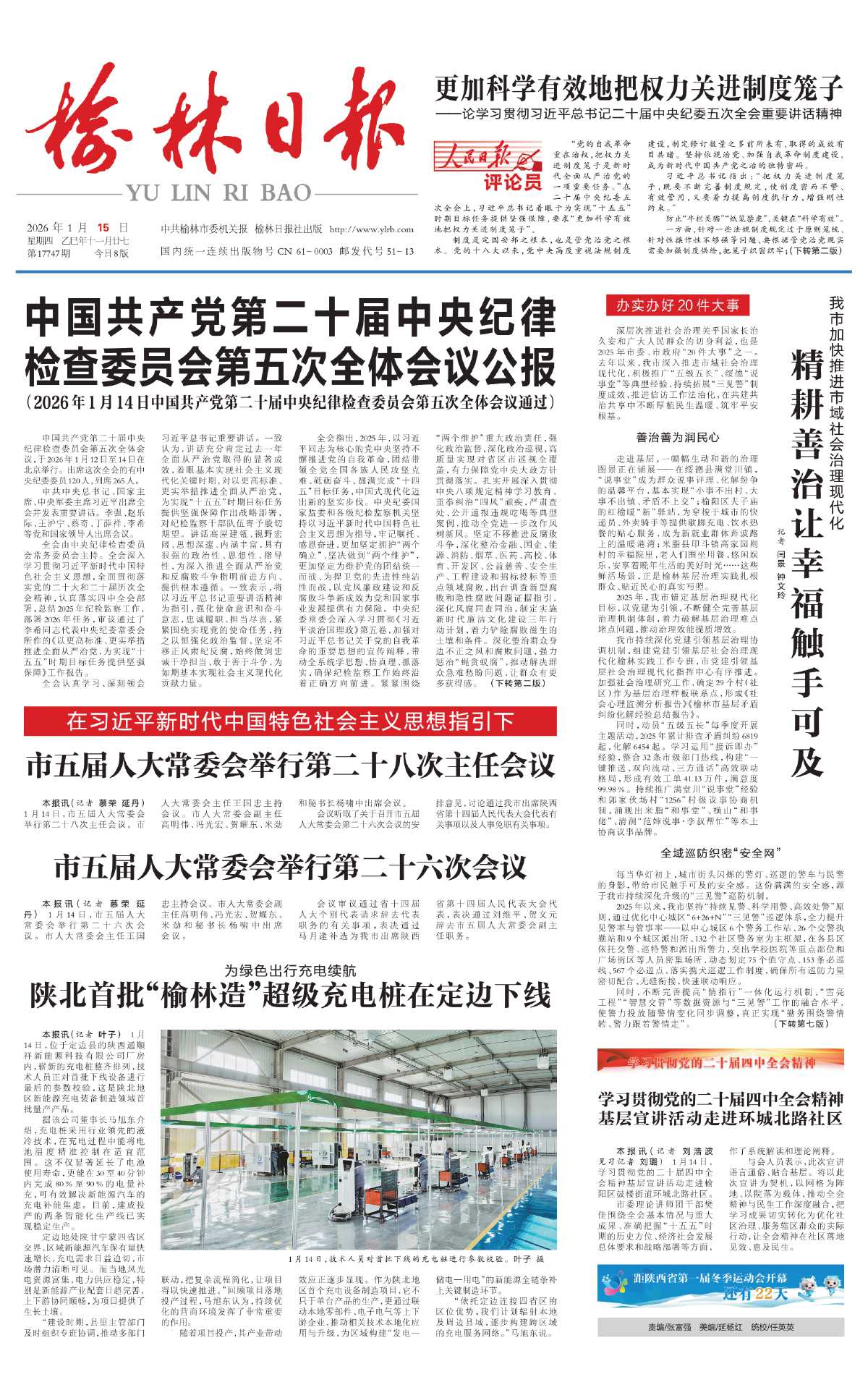 榆林日报 | 2026年01月15日