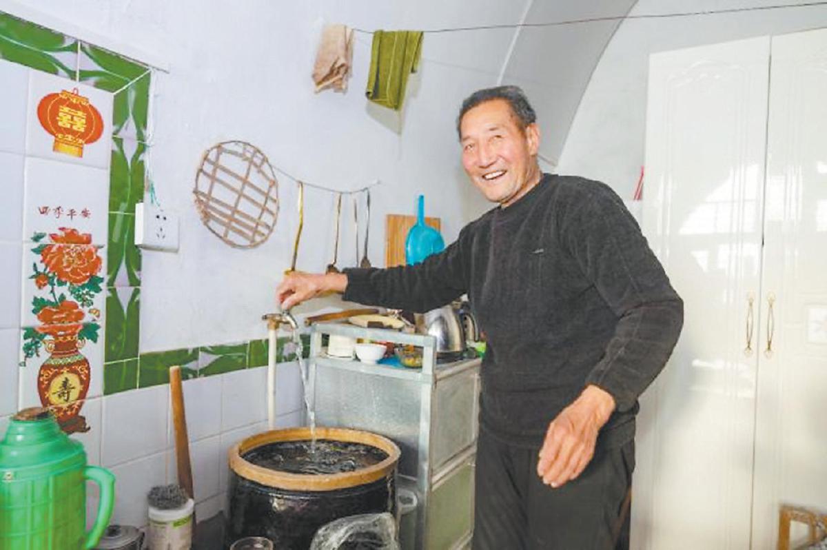 “小时候靠人挑水,后来家家修蓄水池存雨水。可雨水熬粥,上面总漂着一层白乎乎的东西,没一点米香,必须得抓把碱放进去才能咽得下去。现在这水,是从地下550米抽上来的,又经机器净化,水清亮亮的,没一点怪味,自来水管直接通到灶台上,这样的好日子以前想都不敢想啊!”