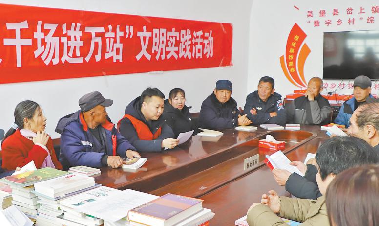宣讲队伍摒弃“照本宣科”模式,将讲台搬到田间地头、文化广场、农家院落,以“吴语宣”方言宣讲为特色,融入陕北说书、快板、秧歌调等本土艺术形式,把“大政策”转化为“家常话”,把“硬理论”变成“活故事”。从辛家沟镇的“板凳宣讲”互动答疑,到社区院落的“唠嗑式”解读,多样化的宣讲活动覆盖干部群众两万余人次,让党的创新理论真正走进群众心里,筑牢思想根基。