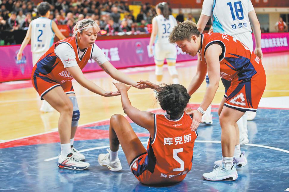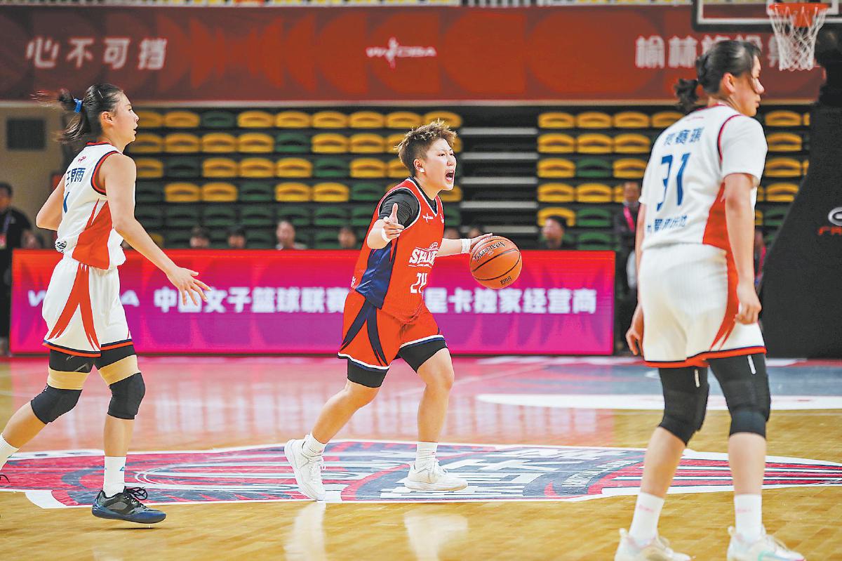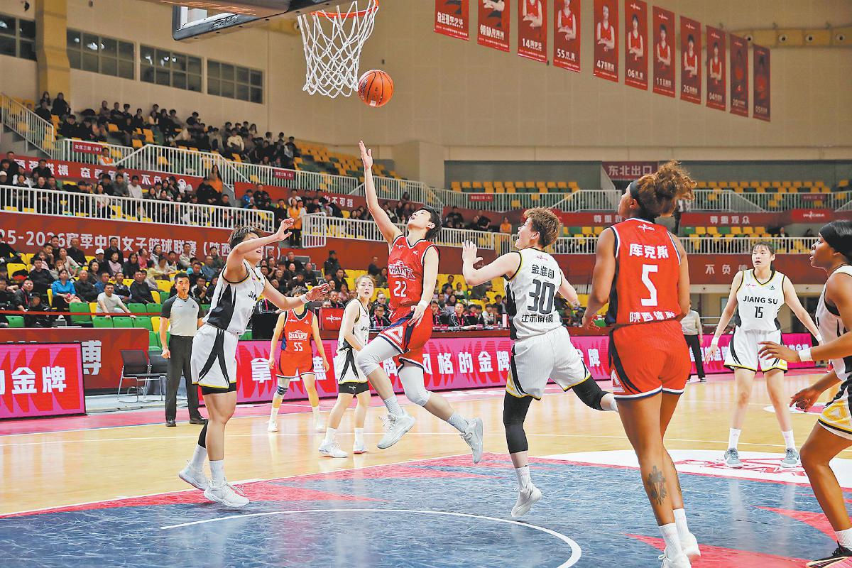 陕西榆林天泽女篮(红)主场首战浙江稠州银行女篮(白)。