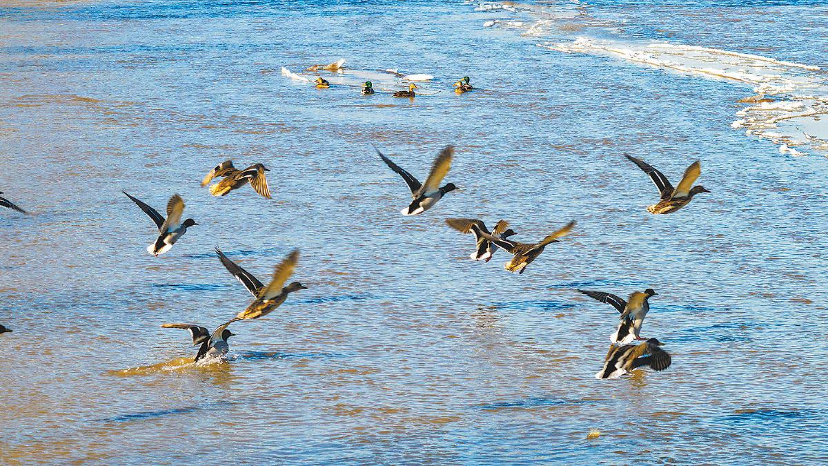 成群的野鸭在无定河上追逐嬉戏。通讯员 雷润耕 摄