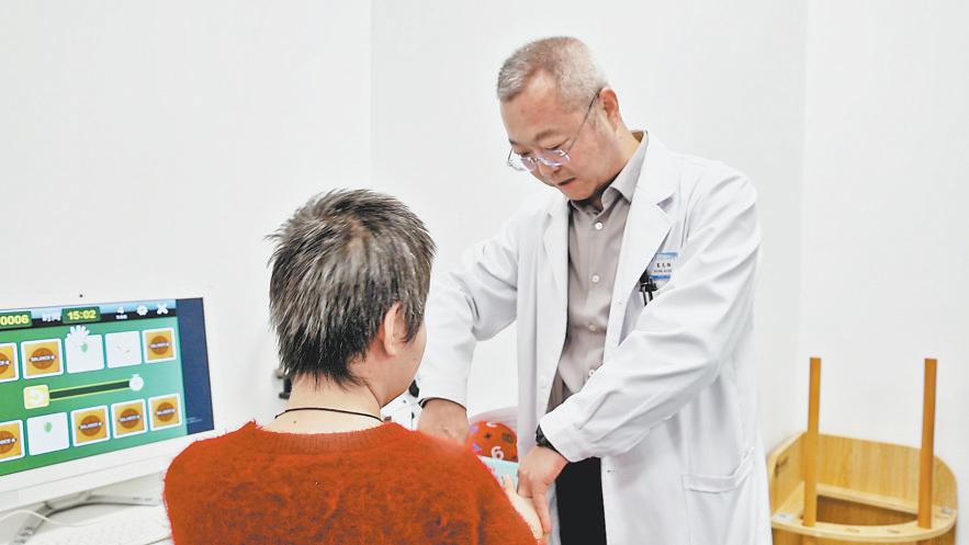 1月13日,在定边县人民医院疼痛·康复科,夏志强为患者检查身体。康孝桃 摄