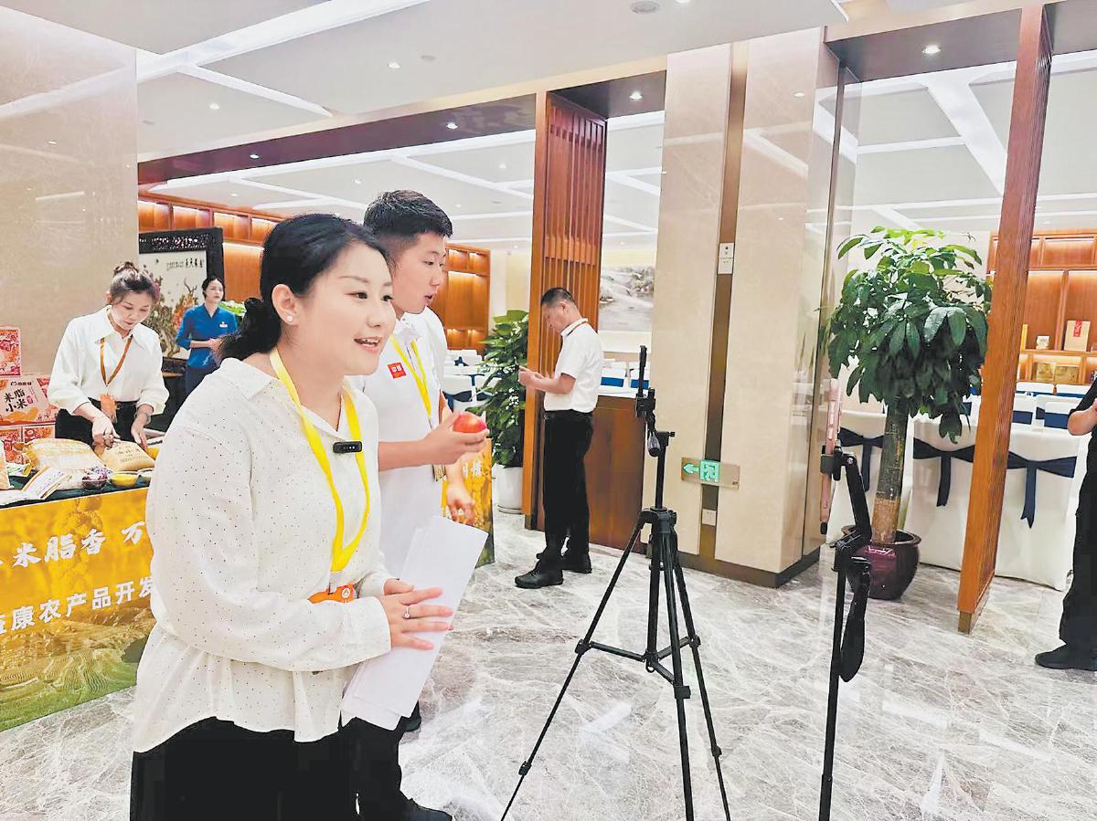 主播热情推荐米脂特色农产品。杨晓慧 摄