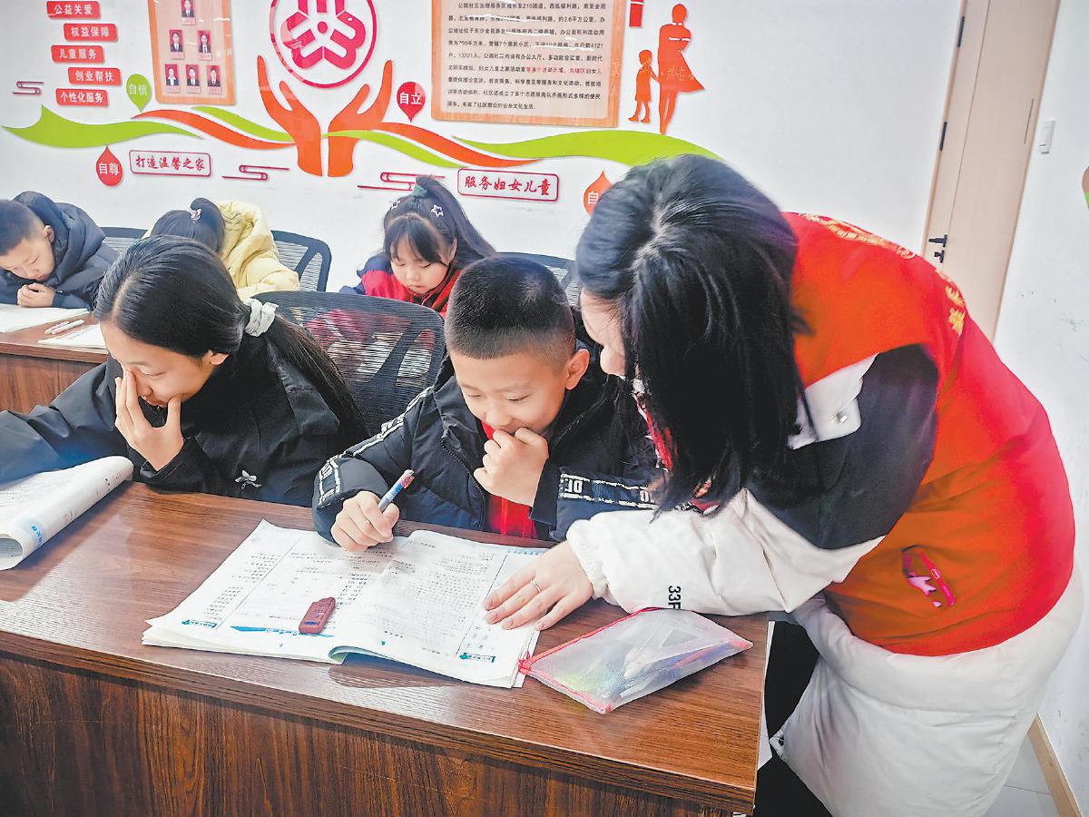 图为大学生志愿者辅导小朋友做作业。 白健美 摄