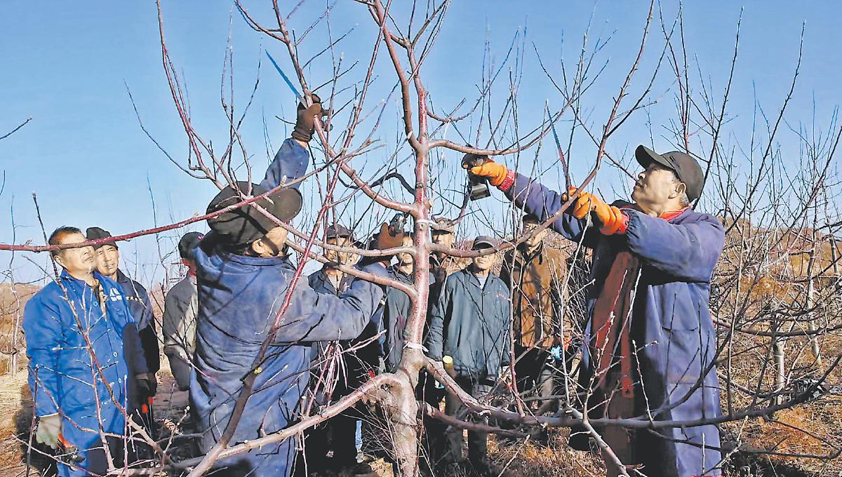 裴家湾镇寺家沟村果树修剪现场。任勇 摄