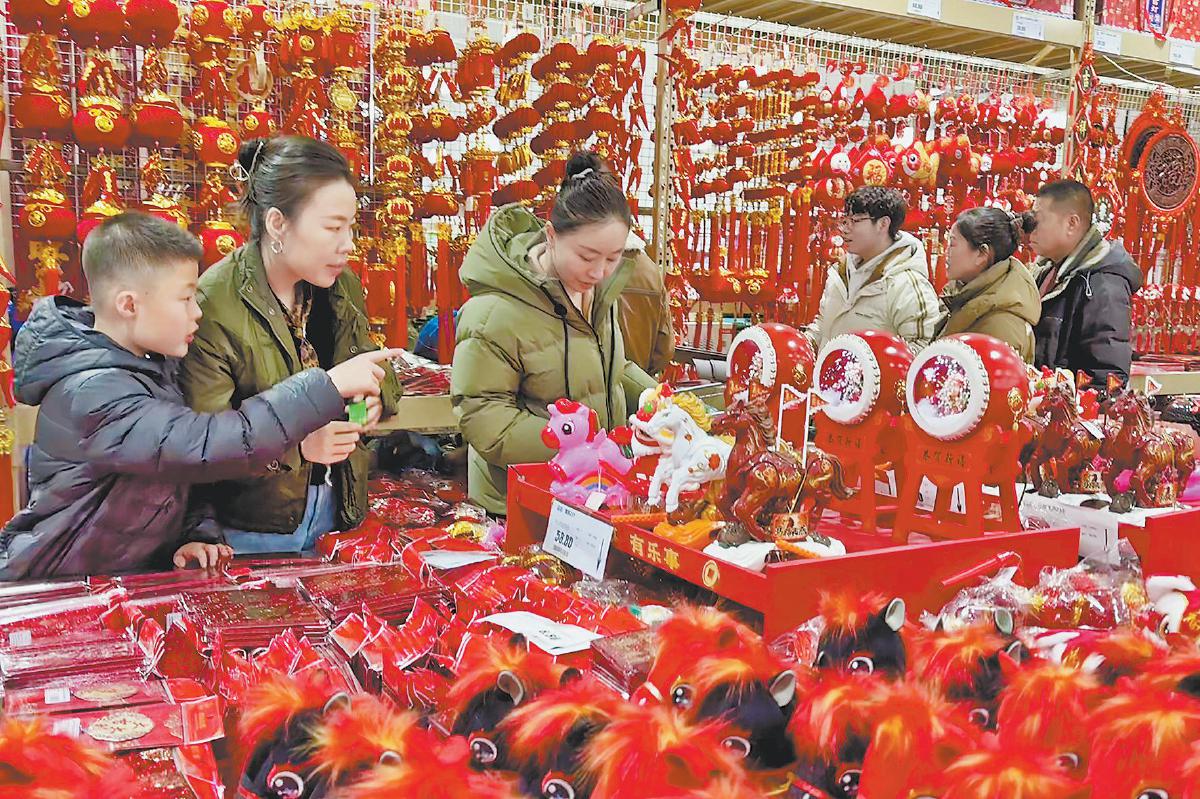 本报讯(记者 刘璐 方慧) 春节临近,榆林街头巷尾的年味愈发浓烈。各大年货市场和店铺内,以马为元素的商品正迎来销售热潮,从春联、福字、生肖玩偶到手工制品及饰品,凭借其多元的款式与美好寓意,成为消费者置办年货的热门选择,勾勒出一幅温暖而鲜活的幸福采购图景。