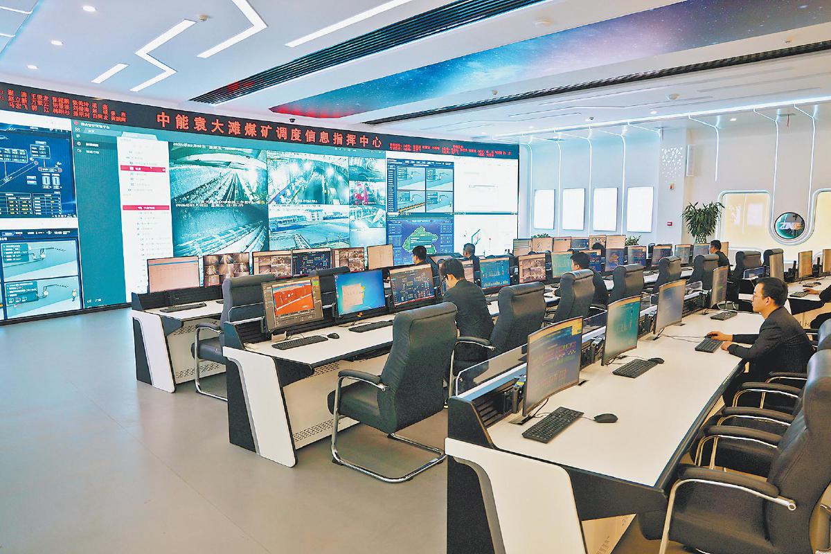 工作人员在袁大滩煤矿调度信息指挥中心进行实时调度。蔡海涛 摄