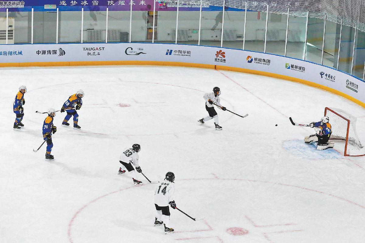 省一冬会“陕西能源杯”冰球(青少年组)甲组男子循环赛榆林队对阵汉中队。记者 李强 摄