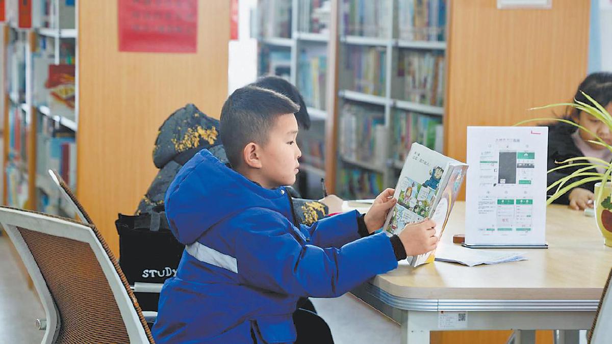 孩子们在定边县图书馆内看书。 康孝桃 摄