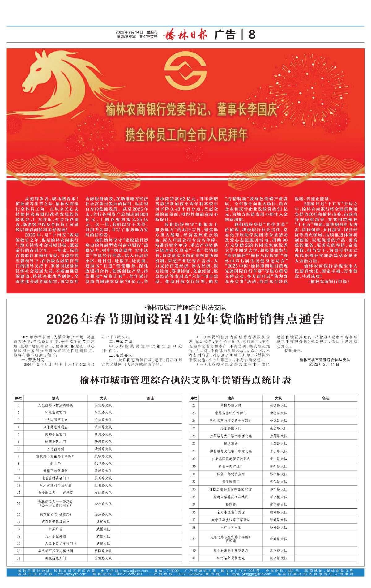 榆林农商银行党委书记、董事长李国庆携全体员工向全市人民拜年