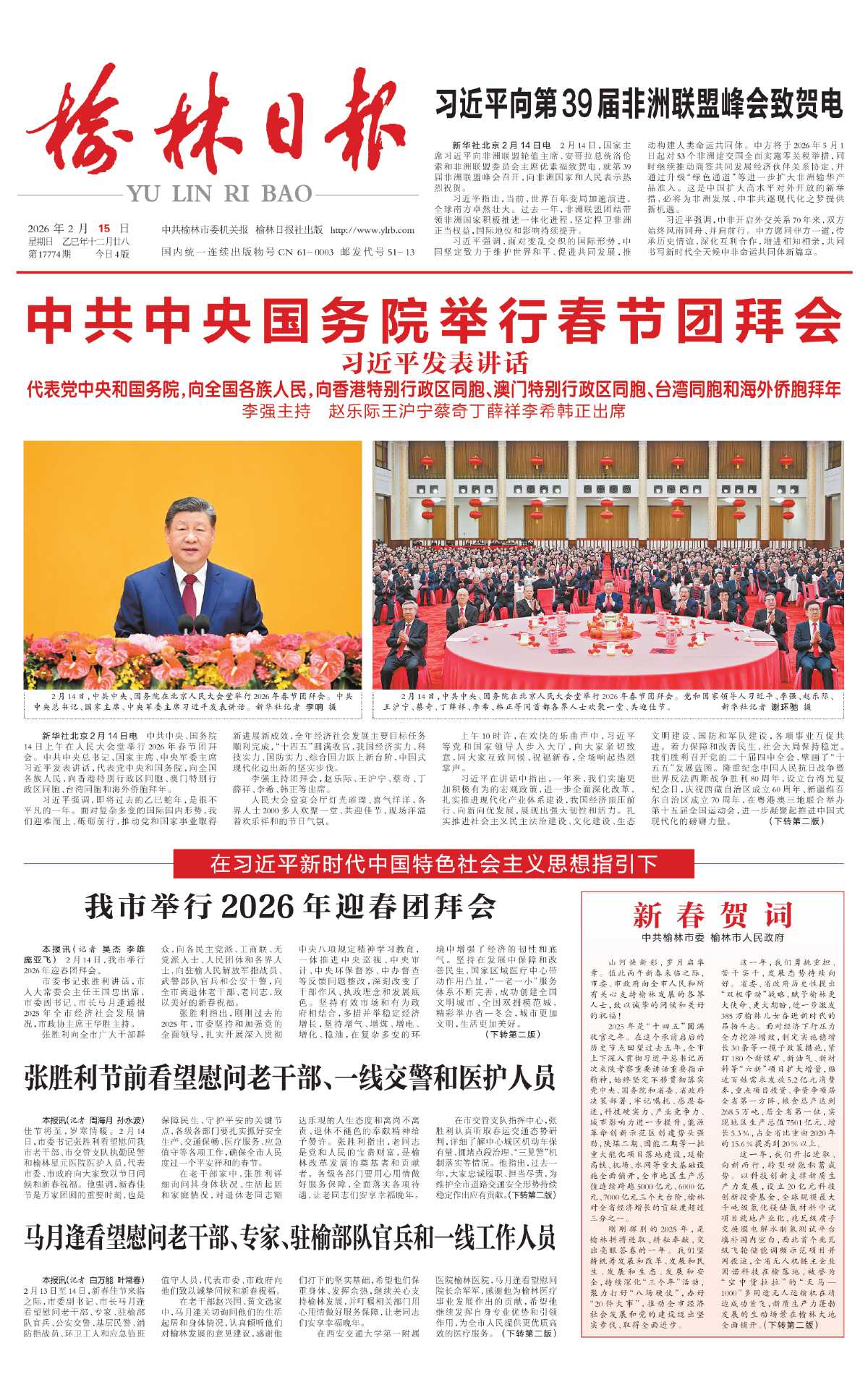 新华社北京2月14日电 中共中央、国务院14日上午在人民大会堂举行2026年春节团拜会。中共中央总书记、国家主席、中央军委主席习近平发表讲话,代表党中央和国务院,向全国各族人民,向香港特别行政区同胞、澳门特别行政区同胞、台湾同胞和海外侨胞拜年。