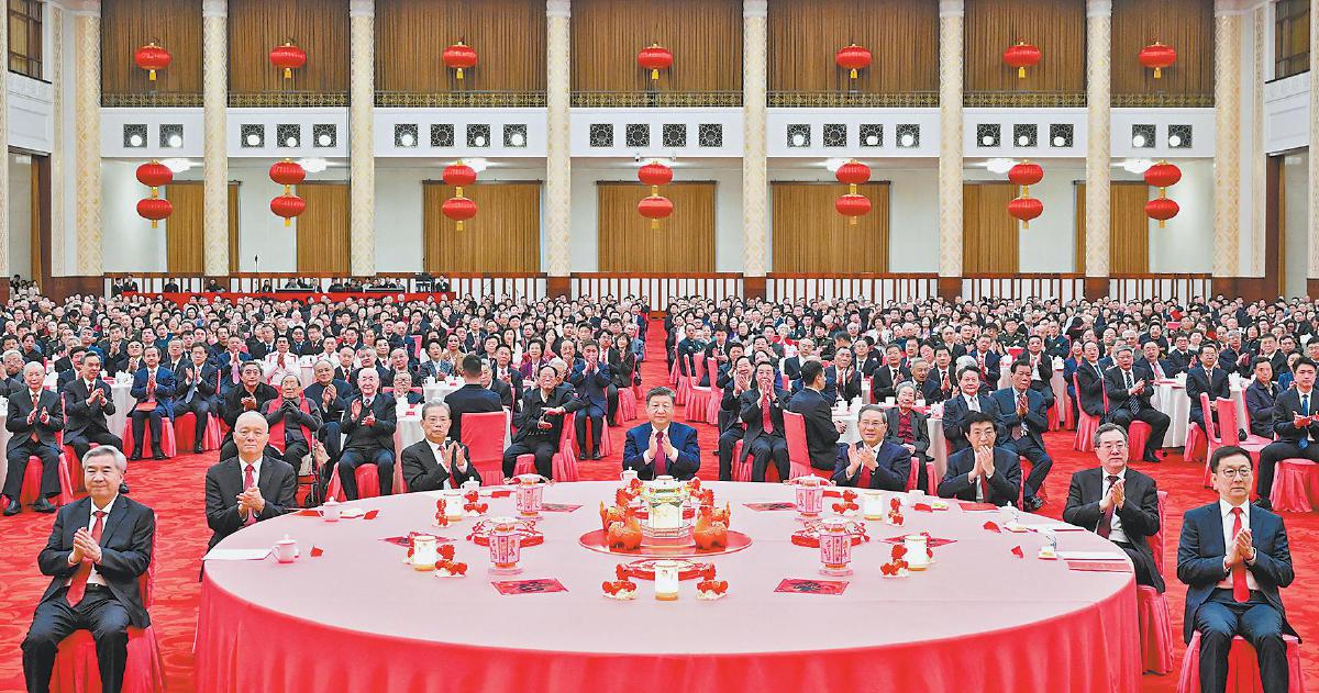 2月14日,中共中央、国务院在北京人民大会堂举行2026年春节团拜会。党和国家领导人习近平、李强、赵乐际、王沪宁、蔡奇、丁薛祥、李希、韩正等同首都各界人士欢聚一堂、共迎佳节。新华社记者 谢环驰 摄