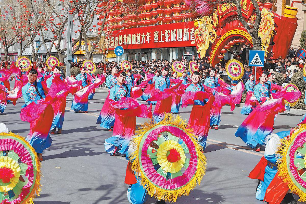 二月二十二日,子洲县秧歌队在榆林古城进行展演。 记者 刘继远 摄