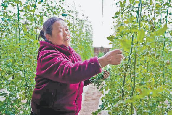 正月的陕北天寒地冻,朱官寨镇落古峁村的现代农业大棚里,却暖意融融、春意盎然。村民白富清正在小心翼翼地打理果蔬藤蔓。