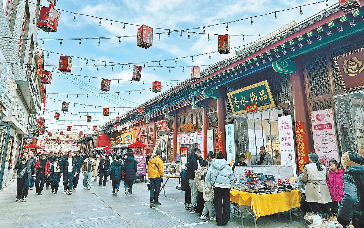 春节期间,榆林夫子庙文化旅游步行街张灯结彩,游人如织。周海月 摄