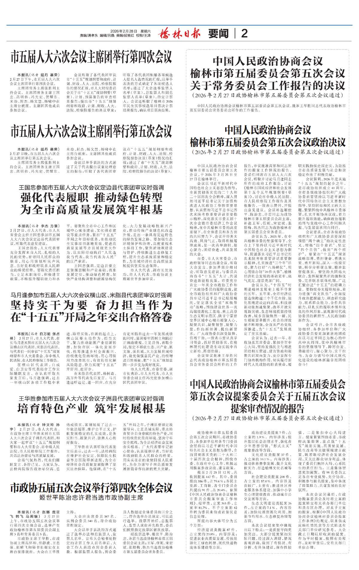 在横山区代表团,白成爱、白卫安等代表结合工作实际踊跃发言。在认真听取大家发言后,马月逢强调,过去一年横山区各项工作稳中求进、取得实效,在新的起点上,横山区要主动作为、担当实干,聚力推动能源产业创新转型,加快市区一体化发展步伐,统筹推进乡村全面振兴,持续优化营商环境,用心用情用力改善民生,有效防范化解风险隐患,奋力实现“十五五”开好局、起好步。