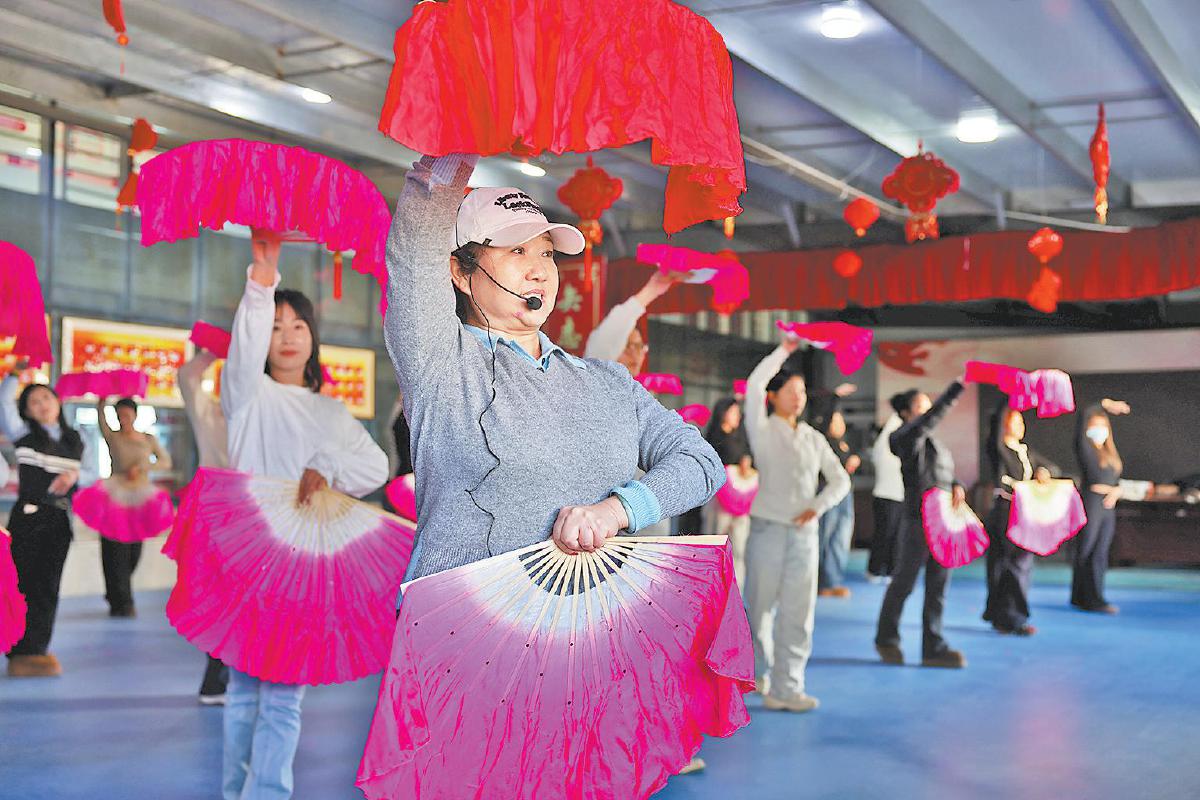 任海燕(中)向学员们示范秧歌表演动作。陈治武 摄