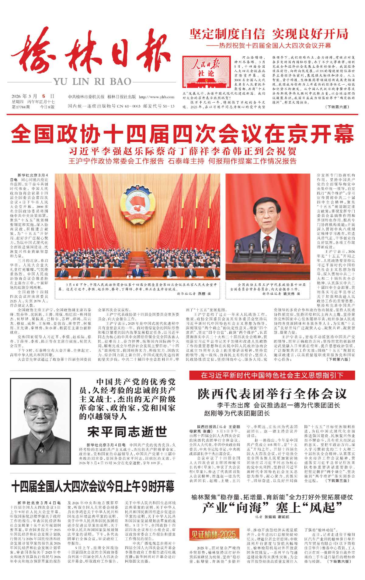 5日上午,出席全国政协十四届四次会议的全国政协委员列席十四届全国人大四次会议开幕会,听取政府工作报告、关于中华人民共和国生态环境法典草案的说明、关于中华人民共和国民族团结进步促进法草案的说明、关于中华人民共和国国家发展规划法草案的说明。 5日下午,全国政协十四届四次会议举行小组会议,审议政协常委会工作报告和提案工作情况的报告。