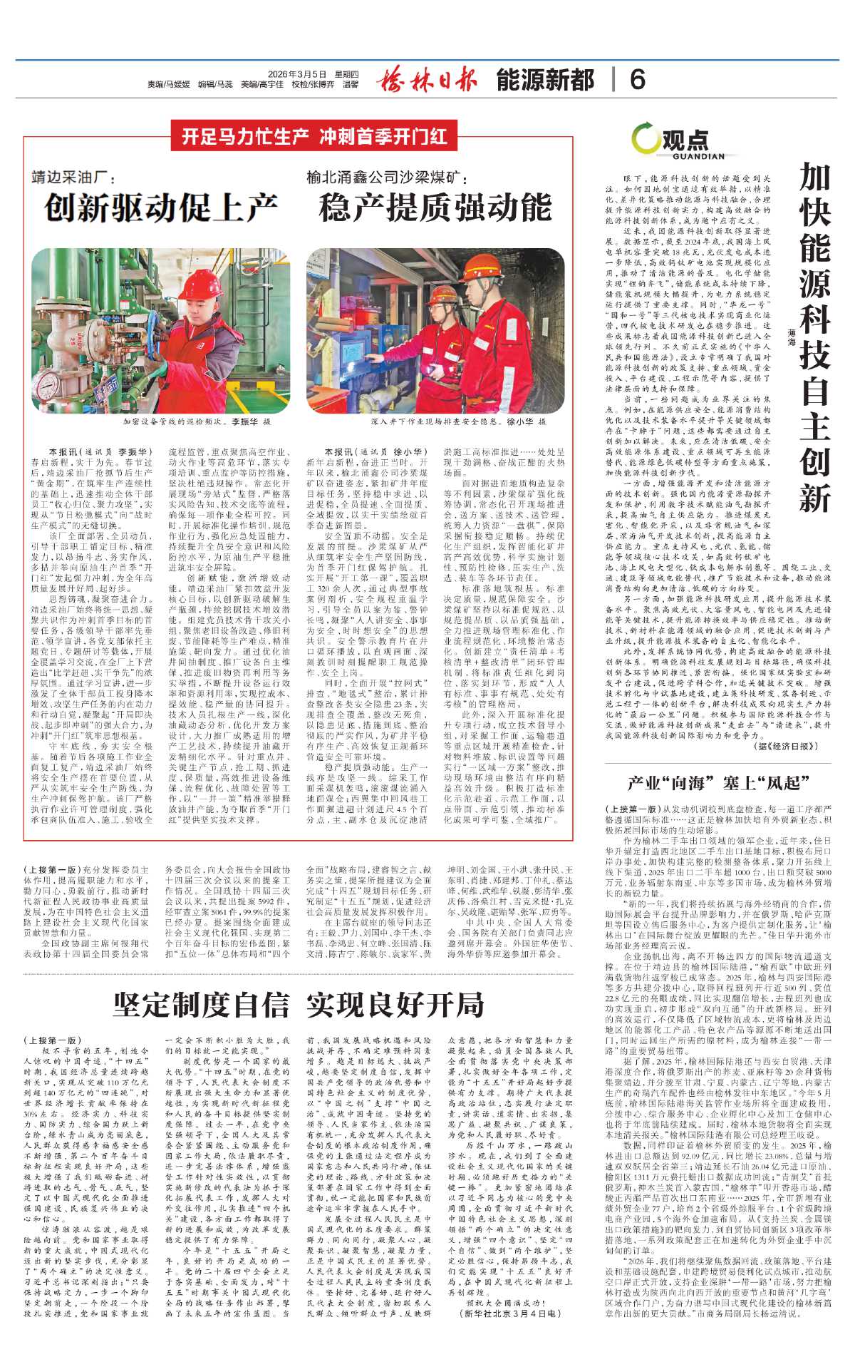 稳产提质强动能。生产一线亦是攻坚一线。综采工作面采煤机轰鸣,滚滚煤流涌入地面煤仓;西翼集中回风巷工作面掘进超计划进尺4.5个百分点,主、副水仓及沉淀池清淤施工高标准推进……处处呈现干劲满格、奋战正酣的火热场面。