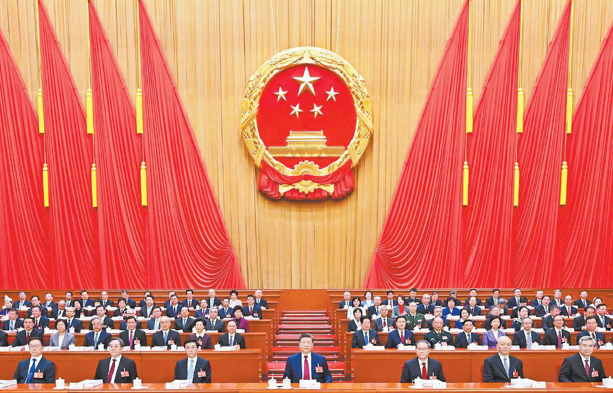 新华社北京3月5日电 第十四届全国人民代表大会第四次会议5日上午在北京人民大会堂开幕。全国人大代表肩负人民重托出席大会,履行宪法和法律赋予的神圣职责。