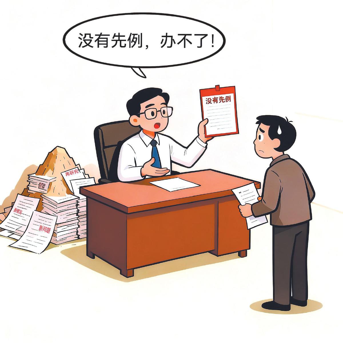 以“没有先例”推诿塞责,本质是回避矛盾、不敢担当的懒政思维。当下,改革攻坚、民生服务领域出现不少新问题、新情况,若凡事以“过去没做过”拖延应付,不仅贻误发展时机,更会辜负群众期盼。
