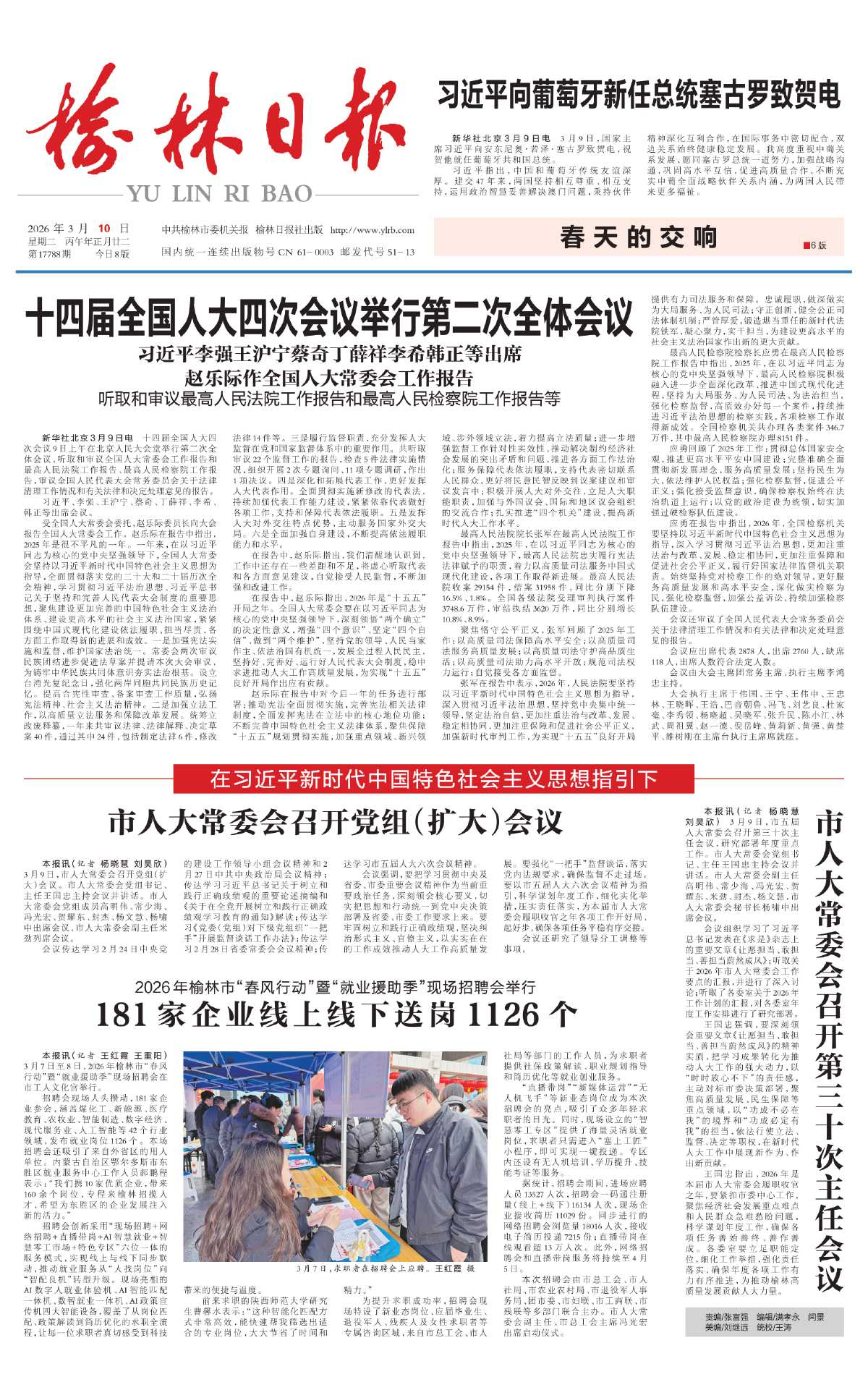 本报讯(记者 王红霞 王重阳)3月7日至8日,2026年榆林市“春风行动”暨“就业援助季”现场招聘会在市工人文化宫举行。