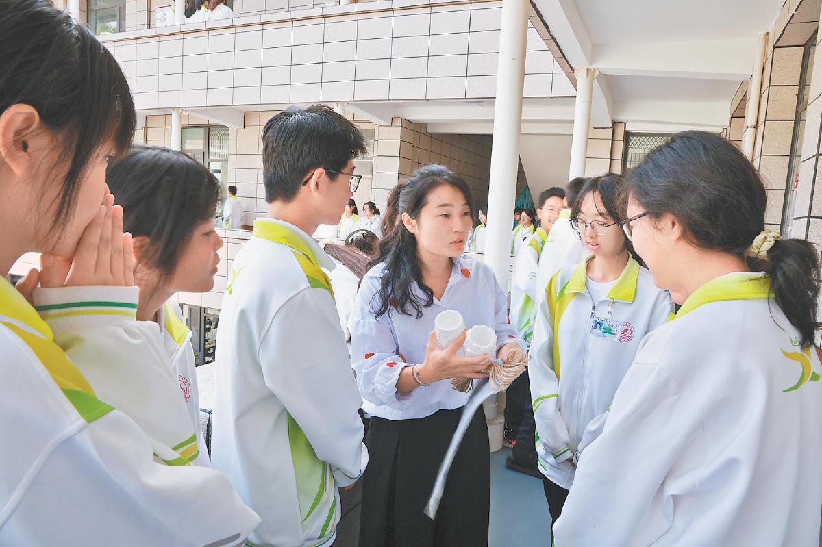 子洲中学老师课间与学生交流互动。高少莹 摄