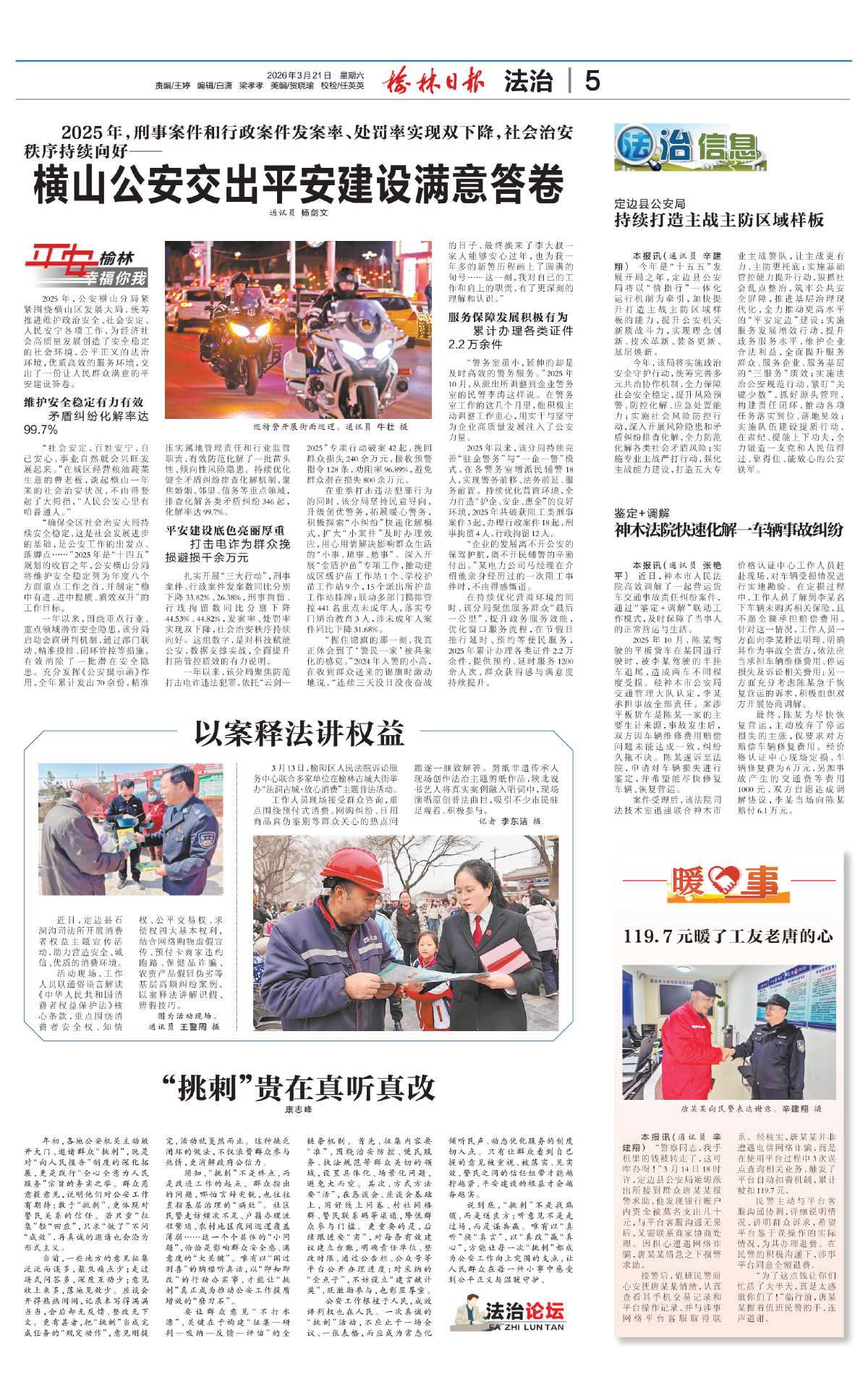 横山公安交出平安建设满意答卷