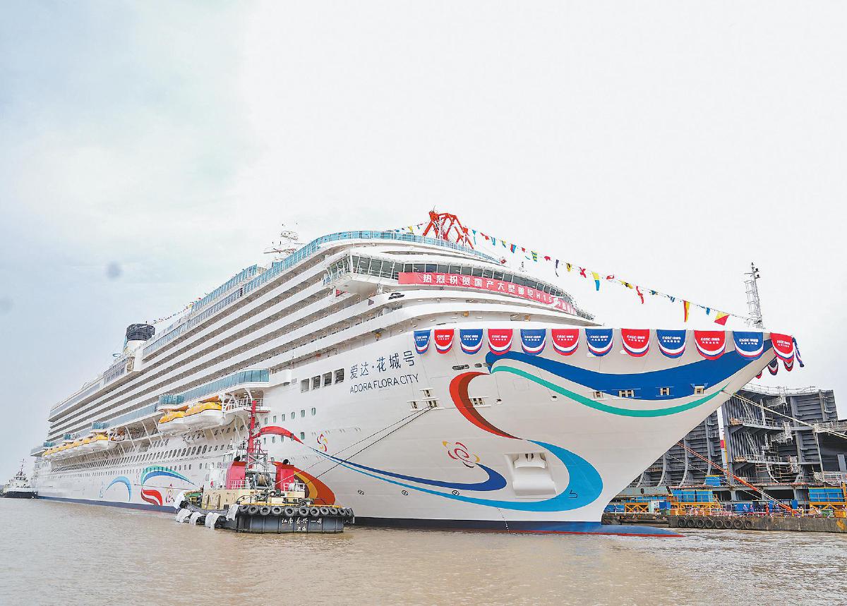 3月20日,第二艘国产大型邮轮“爱达·花城号”在上海出坞。这意味着该船的船体结构完整,已具备航行能力,全面转入码头调试阶段。“爱达·花城号”计划于今年底完成交付,将在广州南沙邮轮母港开启国际航线。