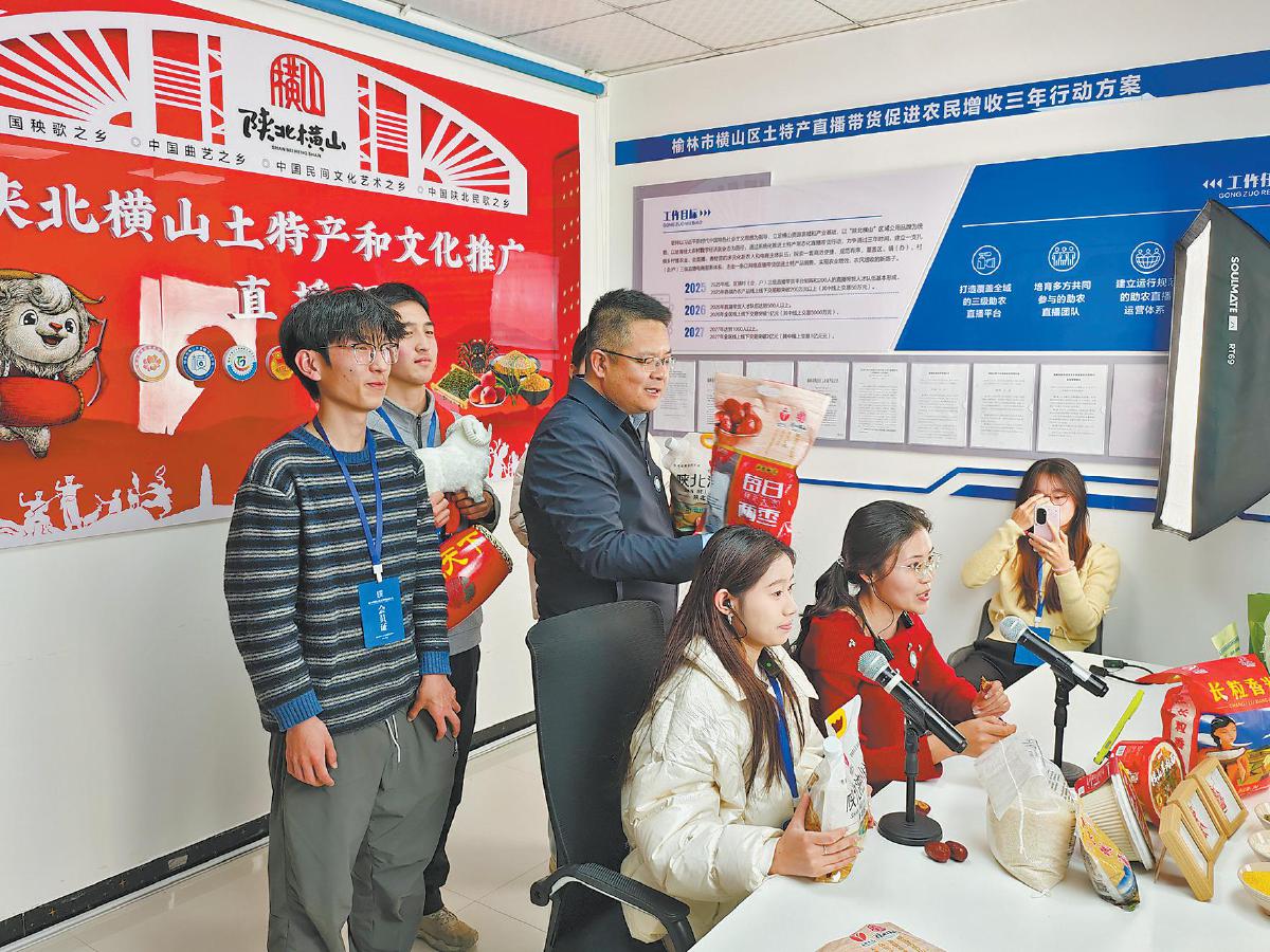 协会的成立,让全链条服务落地见效、形成合力。“我们和横山职业技术教育中心签订了合作协议,协会的老师定期前往该校授课,传授直播经验,学生们也会定期到直播间进行实战演练,让学到的技能在实战中得到提升。”横山区直播电商协会党支部书记康永飞介绍,协会成立后迅速发力,积极配合区工贸局策划组织2026年陕北横山年货节直播和短视频大赛,涵盖农产品、美食、房产、汽车四大类,其间带动线上线下销售额达4000余万元,相关话题全网播放量达1000余万次,进一步提升了“陕北横山”区域公共品牌的影响力和美誉度。(本版照片均由刘勃江 通讯员 边瑞摄)