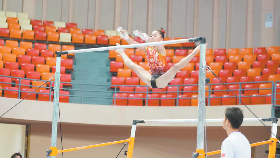 “奥体班”体操队参加陕西省青少年体操冠军赛。 白玉聪 摄