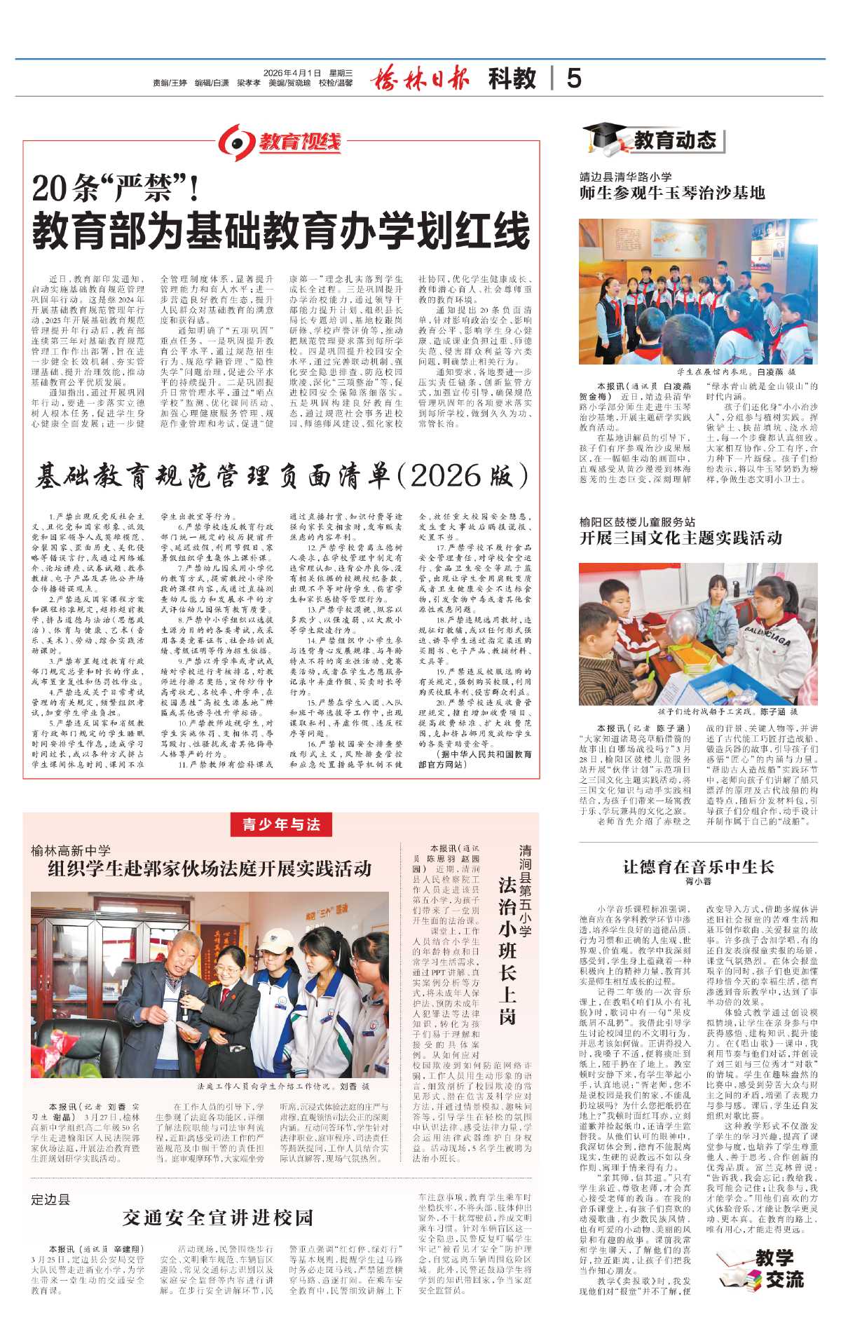 基础教育规范管理负面清单(2026版)