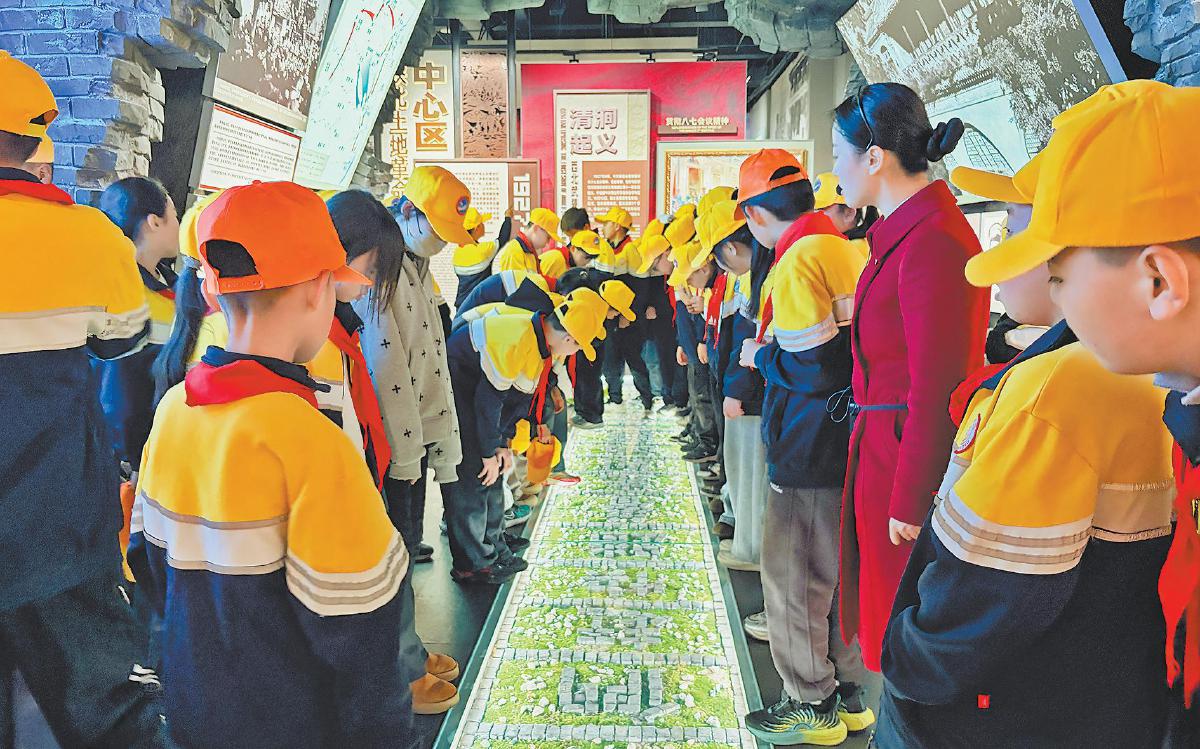 近日,教育部办公厅、国家文物局办公室联合公布以中国人民抗日战争暨世界反法西斯战争胜利80周年为主题的大中小学“大思政课”优质资源建设推介项目名单。绥德革命纪念馆与陕西科技大学合作申报的“烽火映初心 馆校育新人——纪念馆里的抗战主题思政课”,成功入选全国100项精品项目。这是绥德县少先队员在绥德革命纪念馆参观。