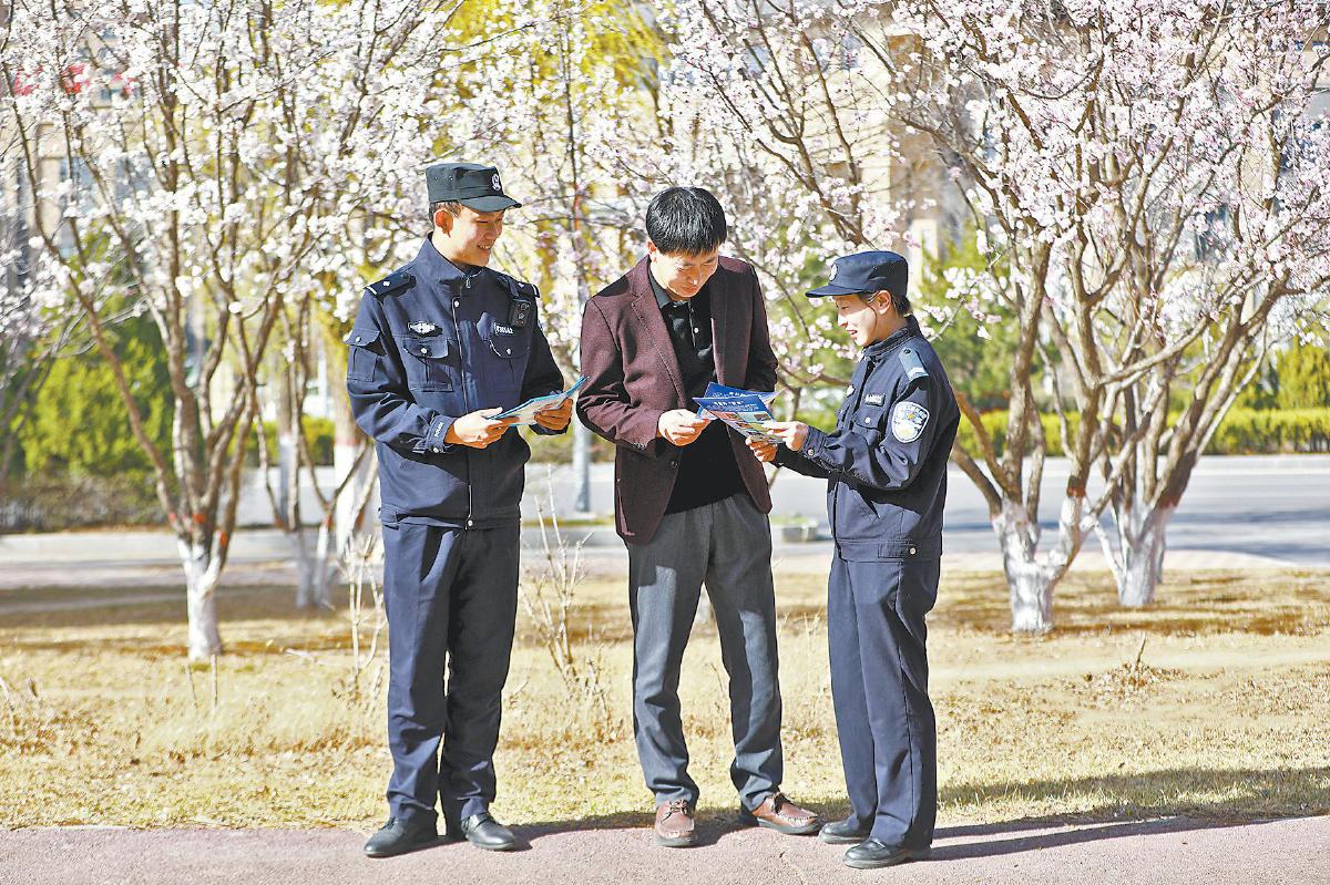 气温回升,杏花盛开。4月3日,公安横山分局白界派出所民警走进辖区公园,开展普法宣传活动。民警通过发放宣传资料、以案释法等形式,向群众普及防毒禁毒、防范电信诈骗等知识,切实增强群众的安全防范意识。