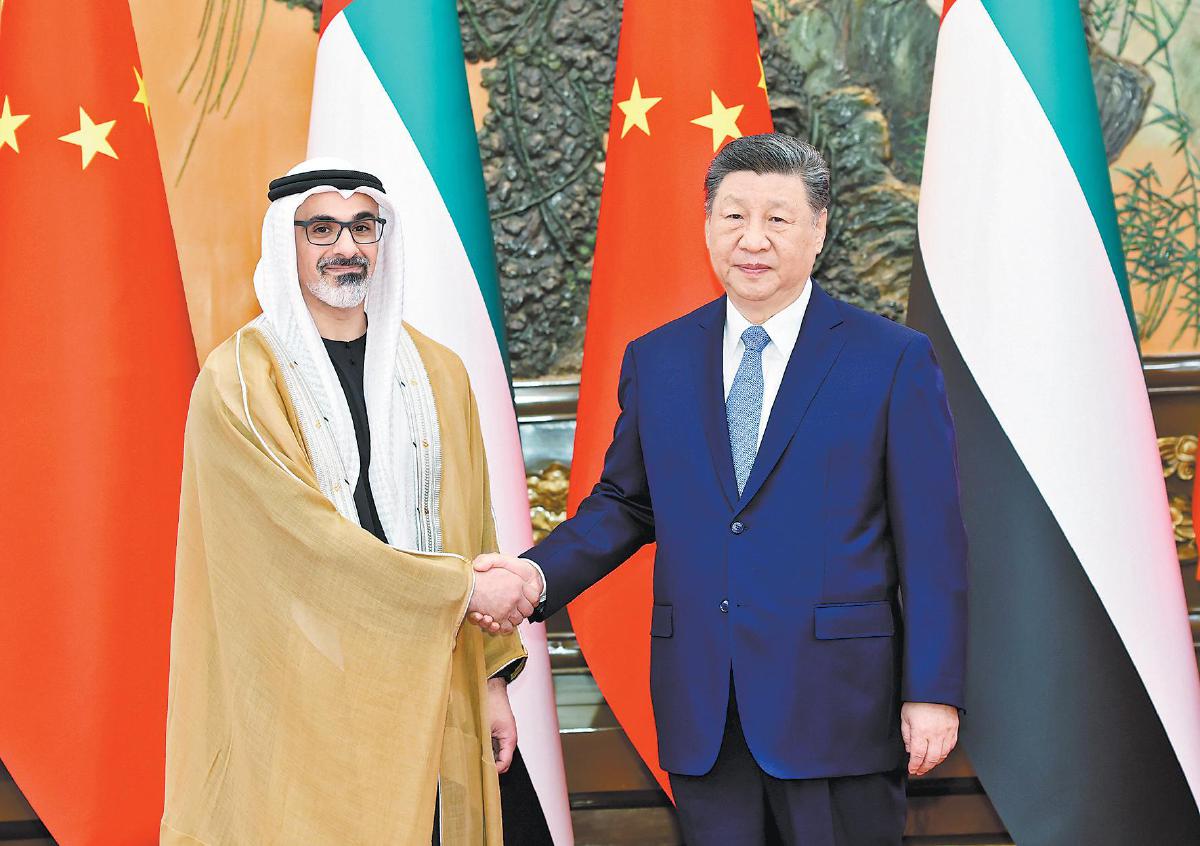 习近平指出,阿联酋是中国的全面战略伙伴,中方始终高度重视发展同阿联酋的关系。在双方共同努力下,中阿关系保持健康稳定发展,政治互信不断加深,务实合作稳步推进,人文交流丰富多彩。巩固和提升中阿关系是双方的坚定共识,符合两国人民期待。中方愿同阿方携手同行,打造更加稳固坚韧、富有活力的中阿全面战略伙伴关系。双方要继续在涉及彼此核心利益和重大关切问题上相互支持,保持高层交往,筑牢战略互信。加强发展战略对接,在能源、投资、贸易、科技等领域深挖潜力,深化互利合作。推动教育、民航、旅游等合作取得更大进展,密切人文交流,夯实民意基础。在联合国、金砖国家等多边平台增进协调合作,以中阿关系的稳定性应对国际和地区形势的不确定性,共同推动构建人类命运共同体。