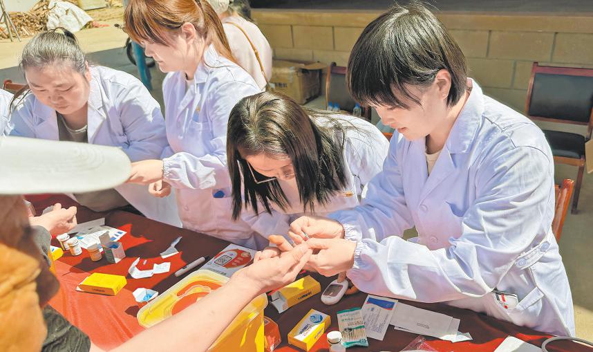 活动现场,学院与玉家河便民服务中心共同为石硷里“助农小院”揭牌。随后,学校医学院医护团队开展免费义诊服务,为当地乡亲进行血压、血糖、血脂、尿酸等基础项目的检测,并细致讲解日常保健、疾病预防等知识,向群众发放医疗保健物资,切实将健康关怀送到群众家门口。