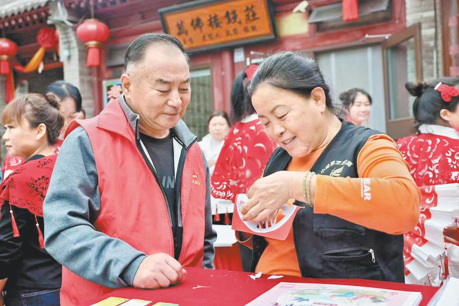 非遗进社区,让传统文化扎根基层土壤。日前,走进万佛楼社区非遗剪纸传习室,剪刀在彩纸间灵活翻飞,纸屑簌簌落下,一幅幅饱含陕北风情的窗花、生肖图渐次成型。社区妇女以剪纸为纽带,互帮互学、分享技艺、交流经验,不仅盘活了本地非遗资源,更走出了一条靠手艺增收致富的道路。“我在社区学了半年时间剪纸,现在能独立完成各类作品,既增加了家庭收入,也增添了生活乐趣。”居民李志莲说。