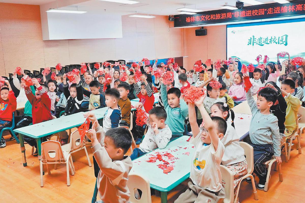 本报讯(记者 郝彦丰 崔瑞妮) 日前,由市文旅局主办的“非遗五进”活动走进榆林高新区第六幼儿园。省工艺美术大师、陕北剪纸市级非遗代表性传承人董林美,用亲切易懂、生动有趣的语言,为孩子们打开了陕北文化与剪纸艺术的大门。